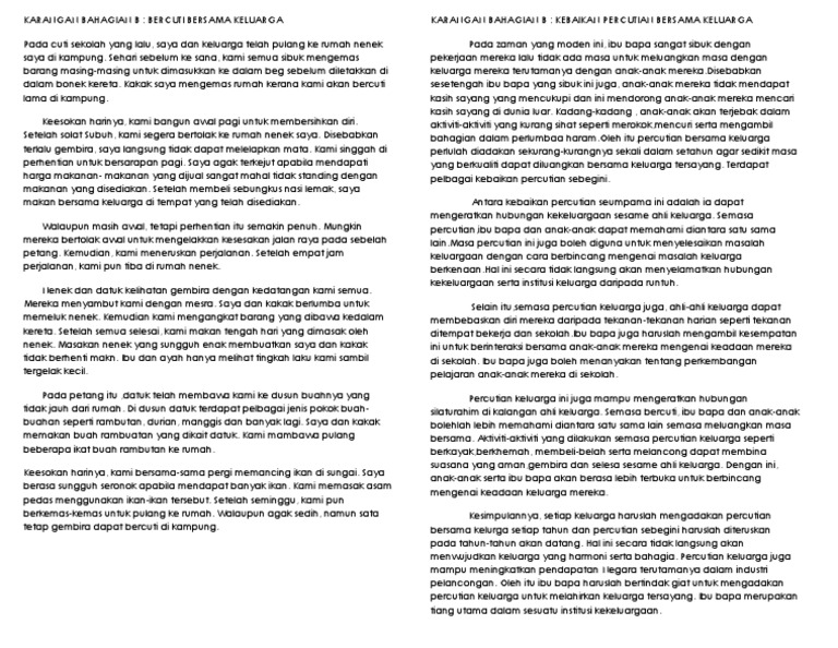 Karangan Bahagian B Percutian Bersama Keluarga Pdf